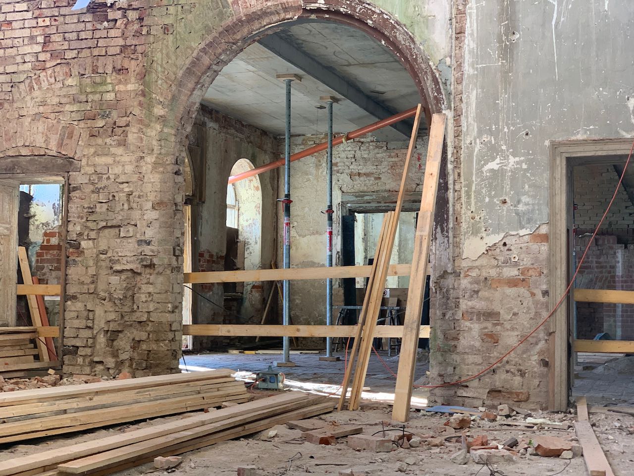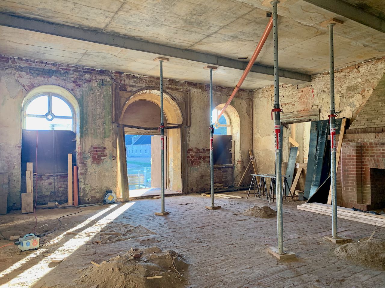 Ansicht der fertigen Geschossdecke über dem Erdgeschoss des Mitteltrakts
