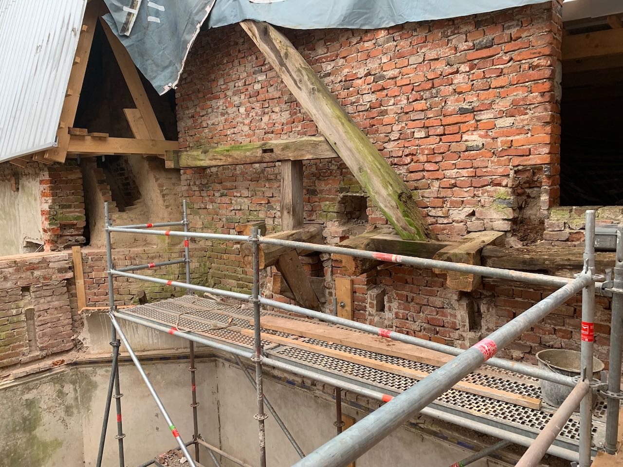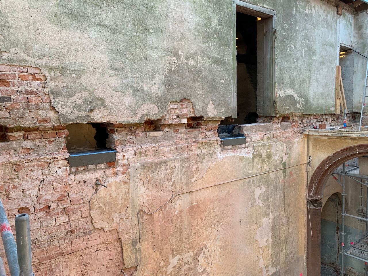 Herstellung der Auflagertaschen für die Decke über der oberen Halle und des Festsaales