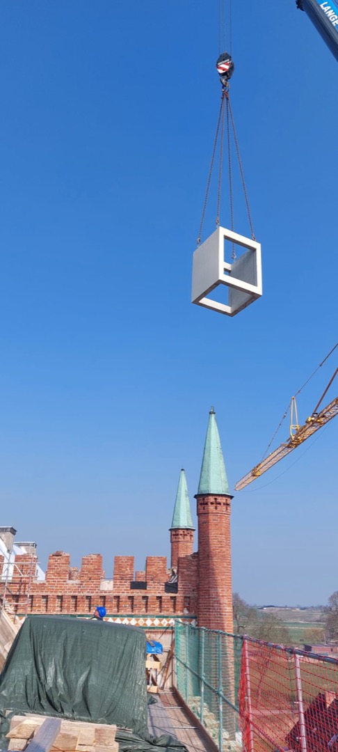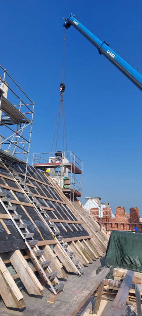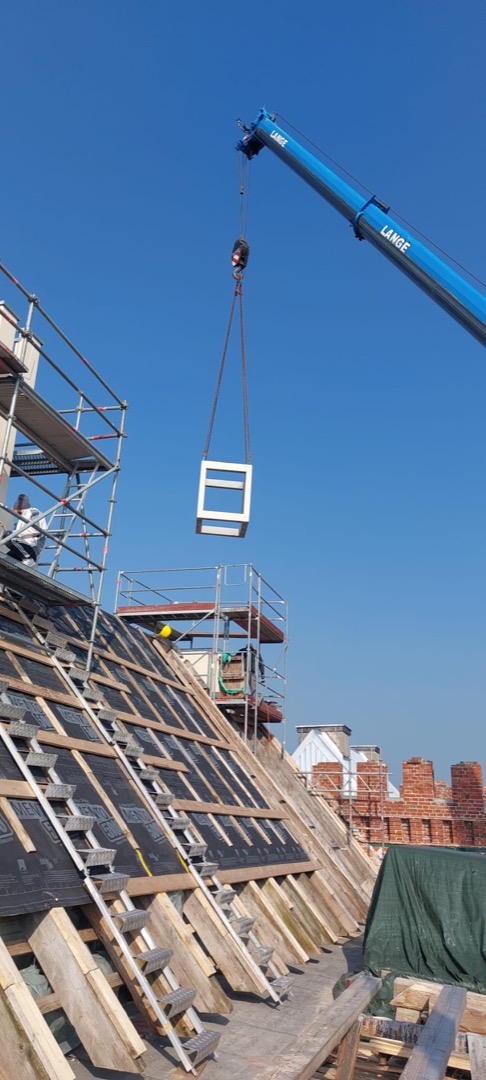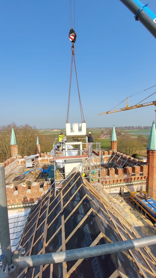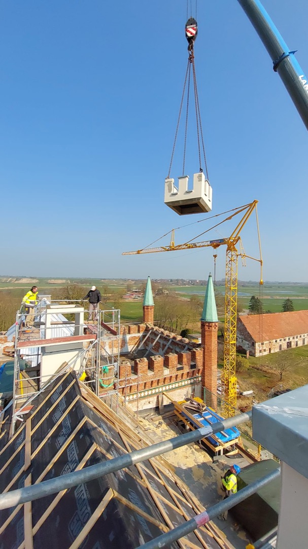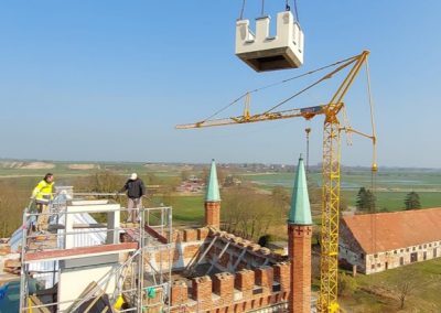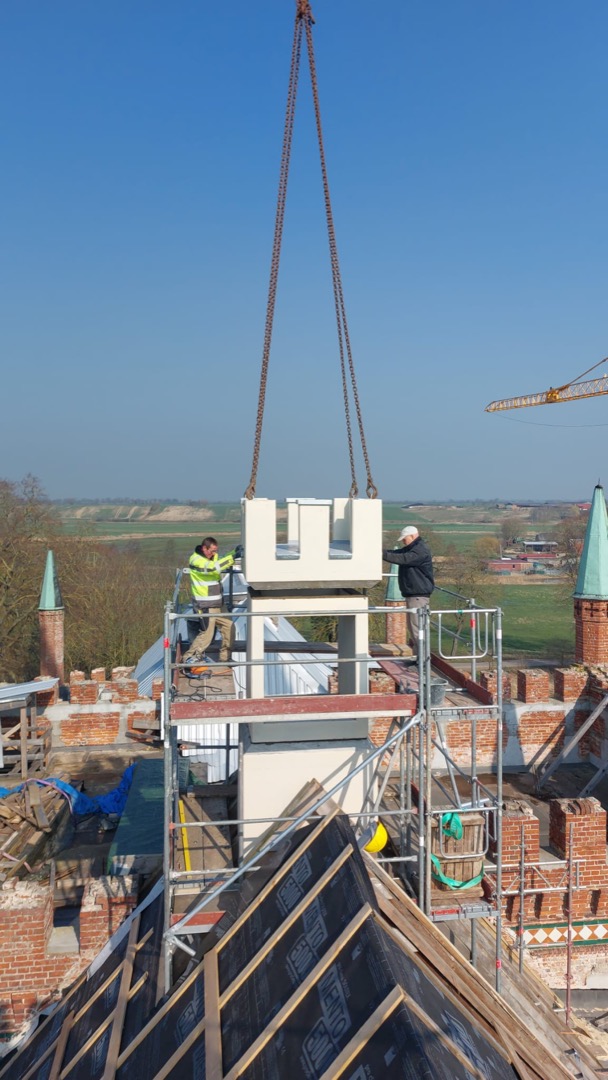 Aufbau und Rekonstruktion des dritten Schornsteins auf dem Südflügel