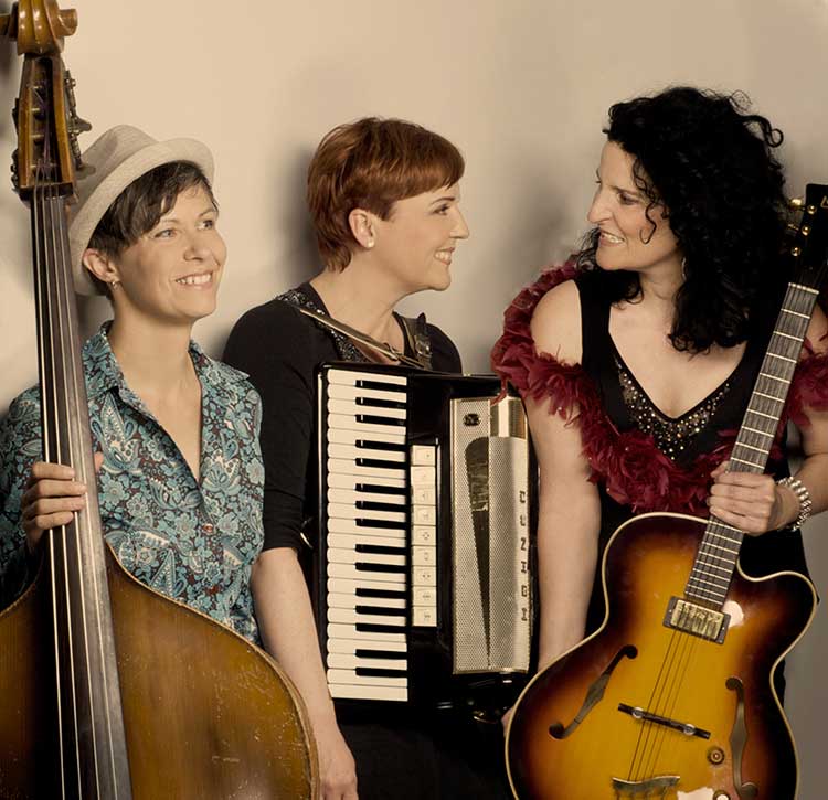 Wie bereits im letzten Jahr, wird es auch 2019 eine musikalische Live-Darbietung auf der kleinen Bühne in der beheizten Reithalle geben. Die drei Musikerinnen von „Les Belles du Swing“, Silke Fell (Gitarre), Doro Gehr (Klavier) und Maike Scheel (Kontrabass), spielen Swing Manouche, arrangiert für die akustischen Instrumente der französischen Clubtradition. Sie erweisen ihre Referenz an das Lebensgefühl des Swing, an die Leichtigkeit und Lebensfreude.